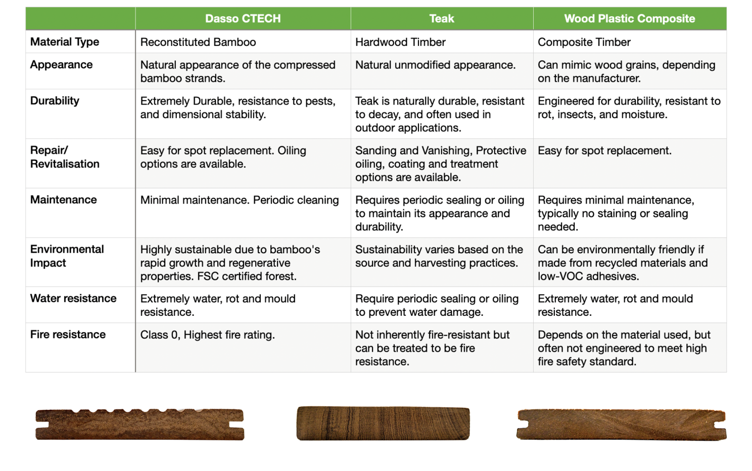 Reconstituted Bamboo Timber vs. Teak vs. Composite - A Comprehensive Guide Reconstituted Bamboo Timber vs. Teak vs. Composite: A Comprehensive Guide